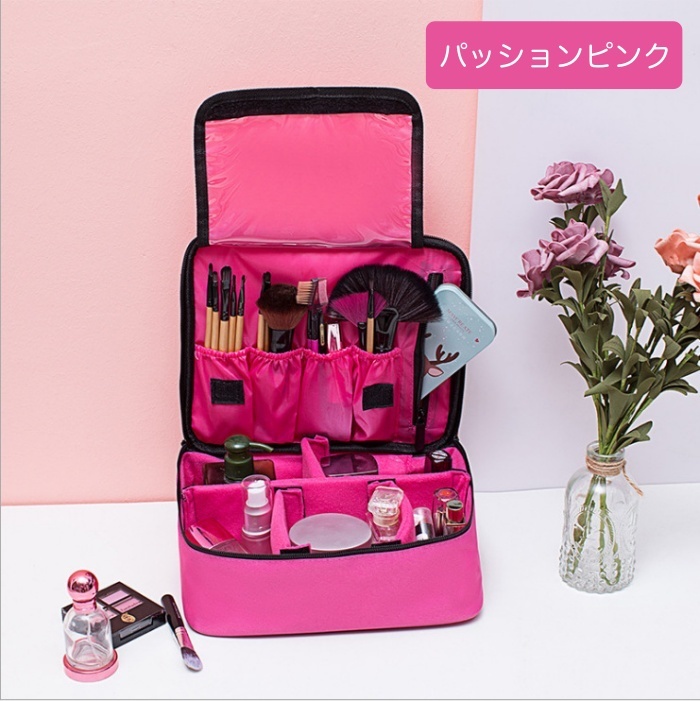 - 送料無料★即納!大容量 ボックス型 メイクブラシケース コスメケース メイクポーチ コスメ収納 ★パッションピンク