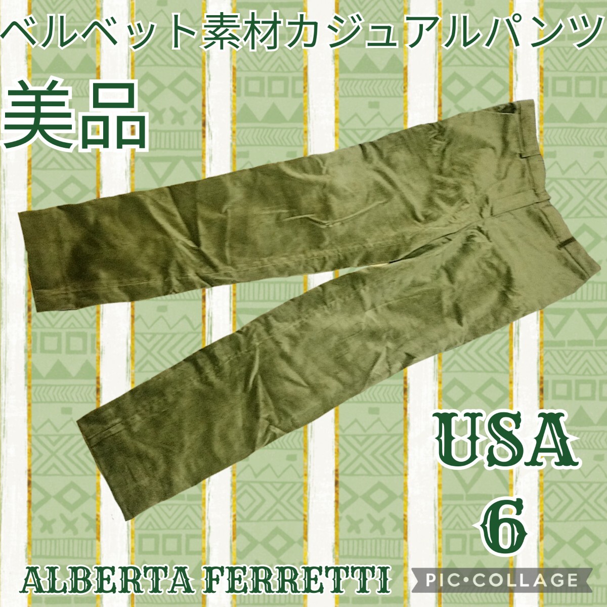- 美品★アルベルタフェレッティ★ベロアパンツ★ALBERTA FERRETTI★緑★ベルベット★グリーン★ストレート★うぐいす色★イタリア製★スリム