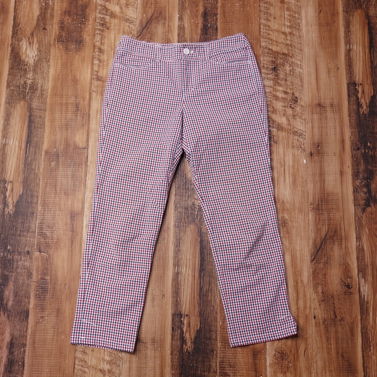 > 美品 フィールドドリーム field/dream ストレッチギンガムチェックスリムパンツ レディース チェック柄 細身 美脚 61 Sサイズ KP2