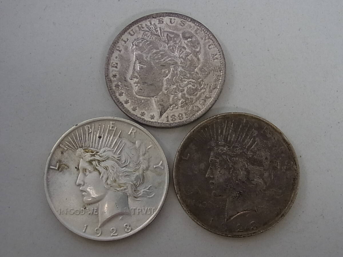 > 170418DK-GC1★アメリカ■1ドル 銀貨 計3枚 1885 モルガンダラー・1923 ピースダラー×2枚/コイン