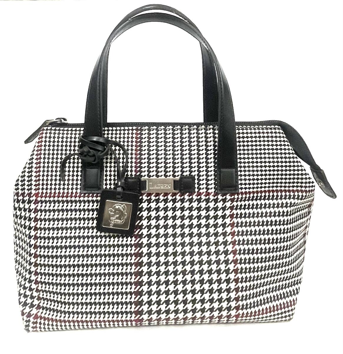 > 【B】【14236】☆★LAUREN RALPH LAUREN ローレンラルフローレン 千鳥格子 ハンドバッグ キャンバス レザー ブラック系 現状品☆★