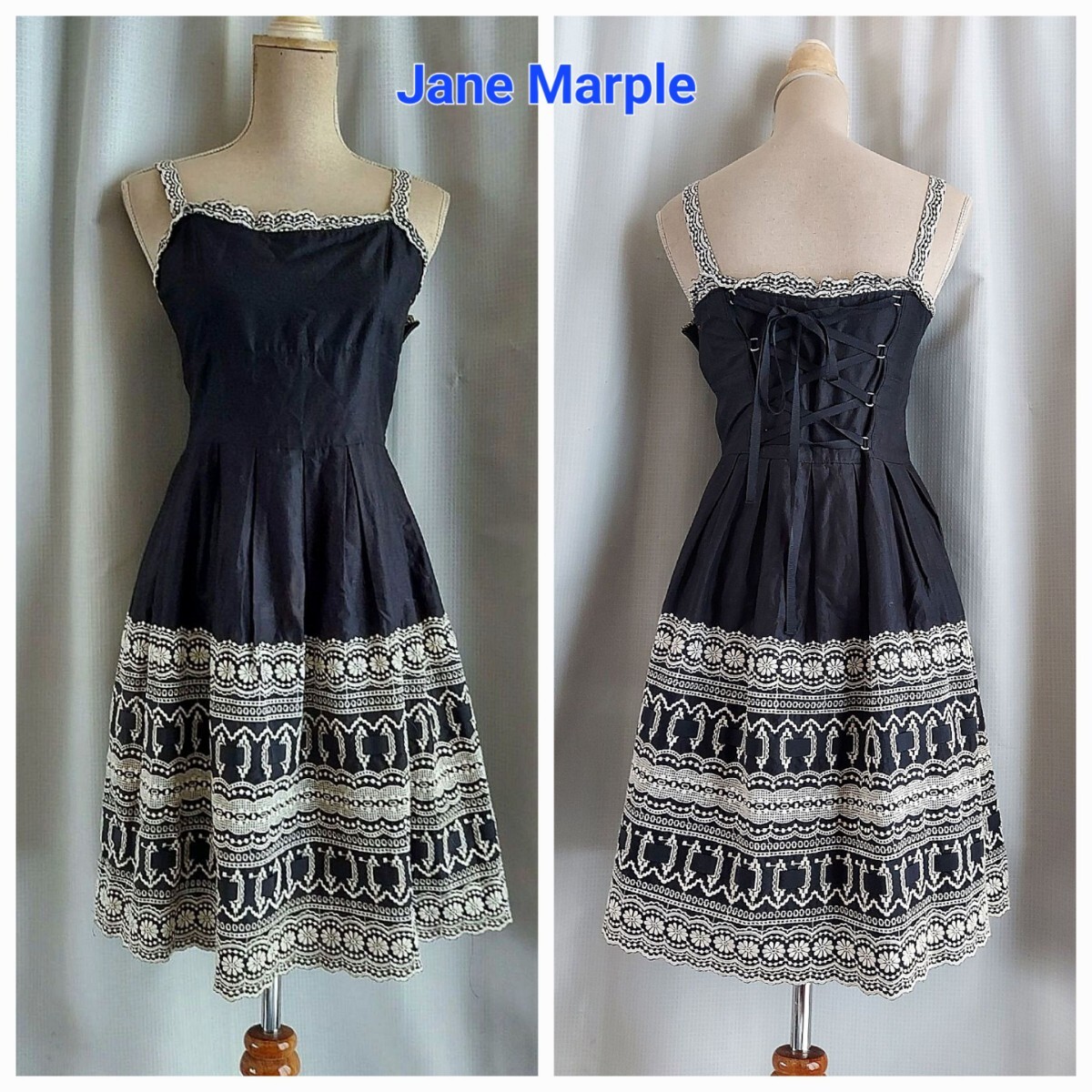 - 大変美品 ジェーン マープル 刺繍一杯のコットンワンピース 黒 ブラック
