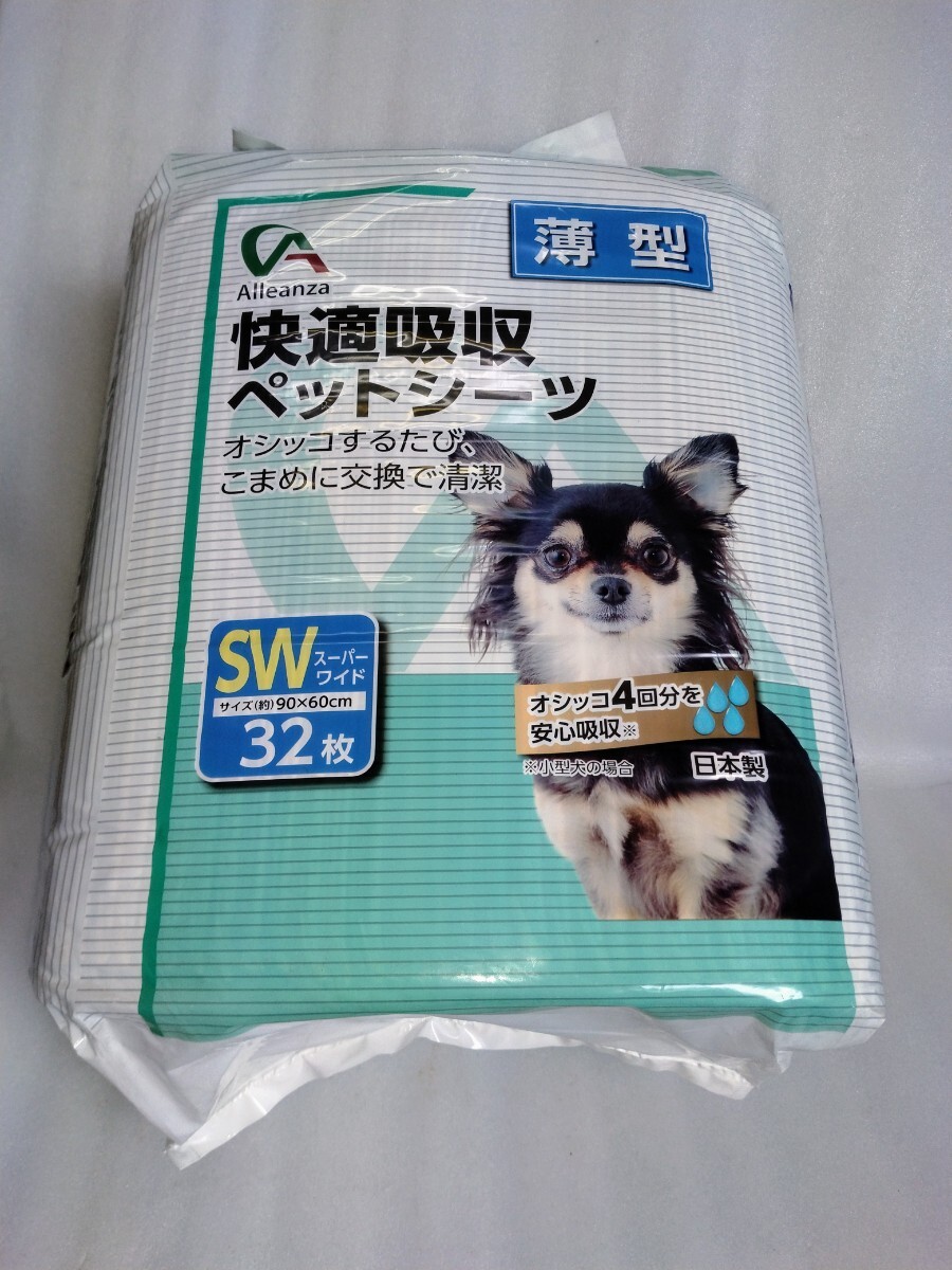 > K13【未開封】 快適吸収ペットシーツ スーパーワイド 薄型 約90×60cm 国産 犬用 猫用 小動物用 日本製 無香料 アレンザ