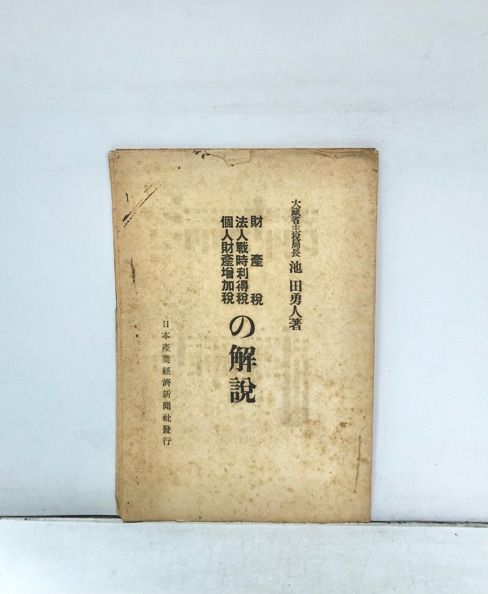 - 財産税・法人戰時利得税・個人財産増加税の解説 池田勇人 著 、日本産業経済新聞社 昭21 28P