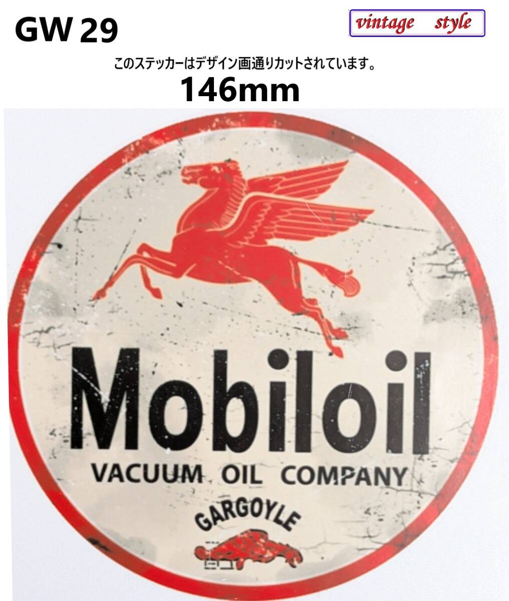 > GW29-03 特価 ヴィンテージスタイル mobiloil モービル オイルステッカー ガソリンステッカー ダメージ加工 レトロ デカール