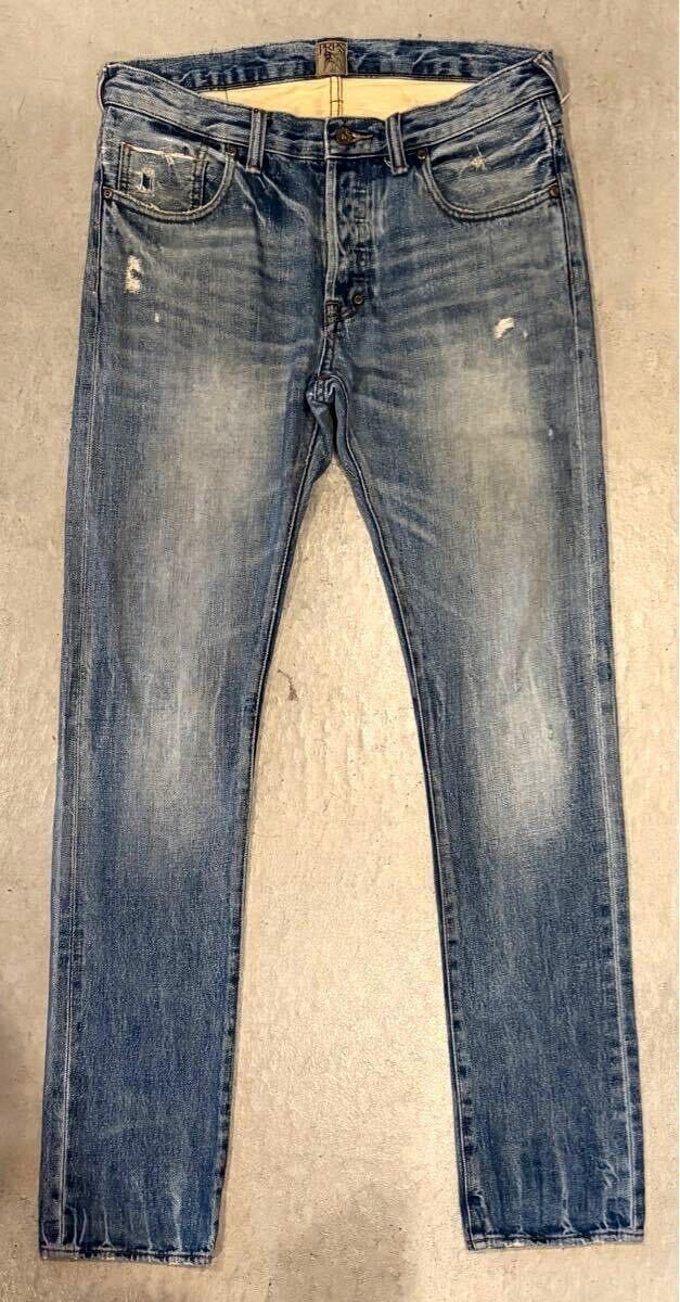 > 【PRPS】RAMBLER 紫製品 E63P135V デニムパンツ ジーンズ メンズ W34 インディゴ 色落ち USED加工 ダメージ スキニー 赤耳 セルビッチ 正規