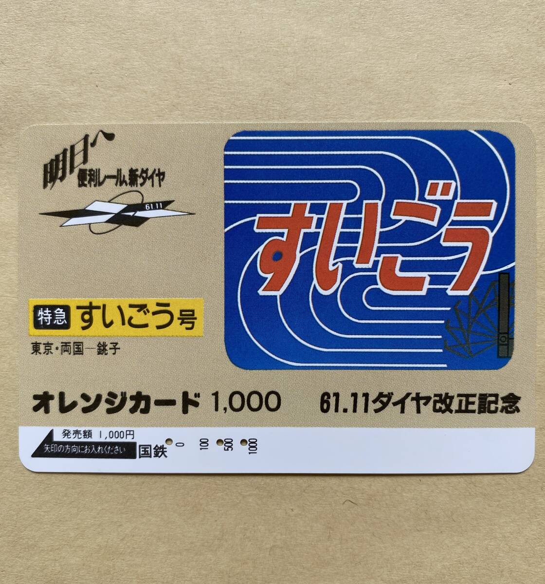 - 【使用済】 オレンジカード 国鉄 特急すいごう号 ヘッドマーク 東京・両国ー銚子 61.11ダイヤ改正記念
