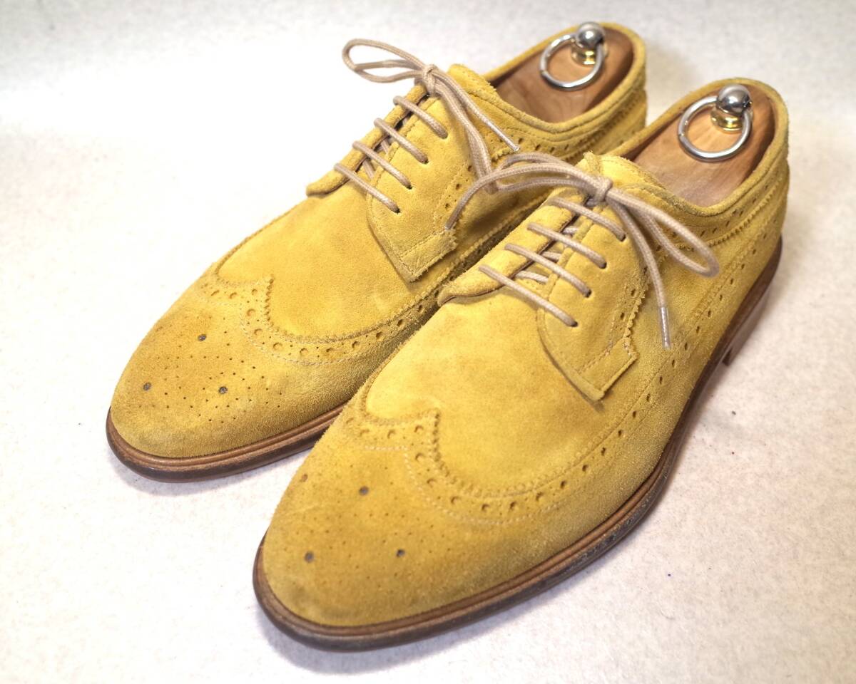 - 【即決価格落札で送料無料】4974■Hudson LONDON/ハドソン・ロンドン■ウイングチップ/マスタード/スエード/レザーシューズ/26.5-27cm■