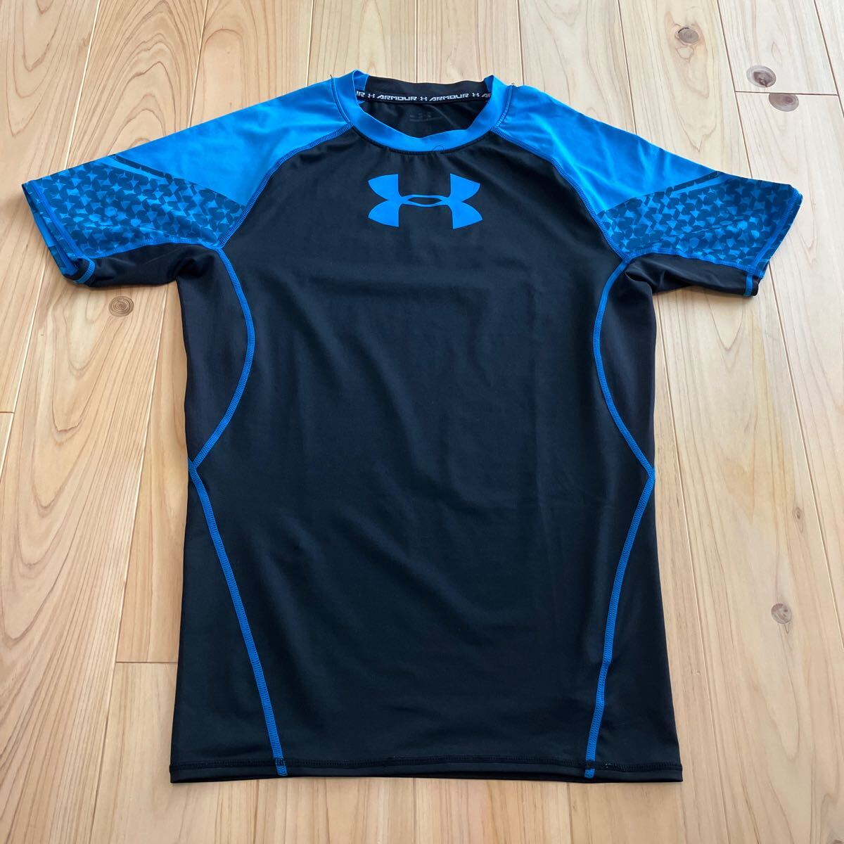 > UNDER ARMOUR 半袖シャツ MD 黒 水色 ヒートギア コンプレッション s/s ショートスリーブ インナー M 丸首 アンダー Tシャツ mcm2888