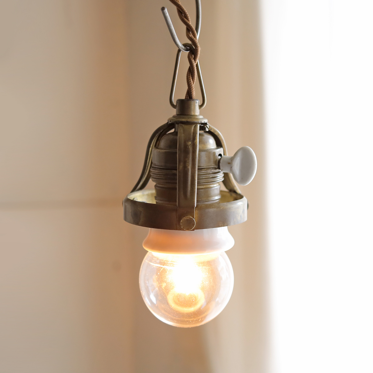 - 仏 1920年 白陶器スイッチ フック付 フランスアンティーク 真鍮 ソケット ランプ/ ブラス 吊り下げ イギリス B* 飴色 真鍮 ソケット GT