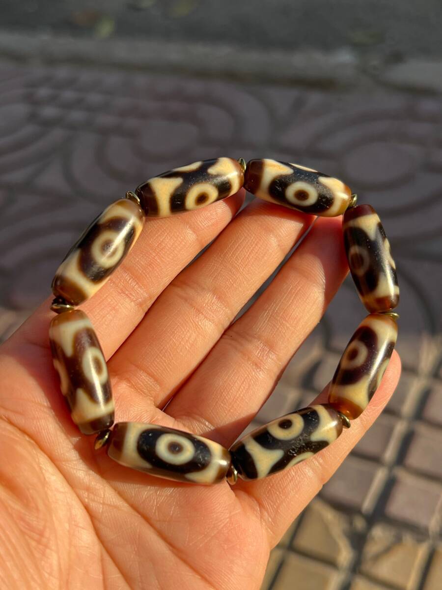 - ▽鴻▽ 瑪瑙製 細密彫 虎牙三眼天珠手串 根付 裝身具 古賞物 中国古玩 中国古美術