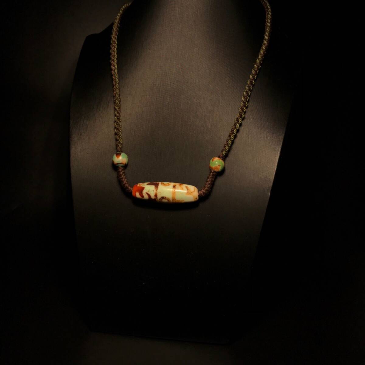 - ▽鴻▽ 瑪瑙製 細密彫 蓮師法器天珠ネックレス 根付 裝身具 古賞物 中国古玩 中国古美術