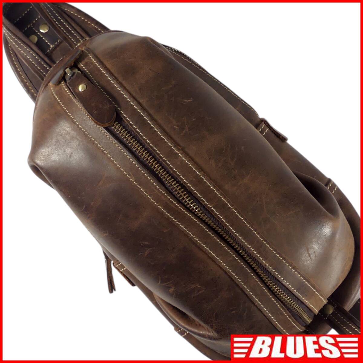 - 即決★N.B.★レザー ボディバッグ ワンショルダー 茶 本革 ヴィンテージ加工 アメカジ バイカースタイル 革鞄 メンズ