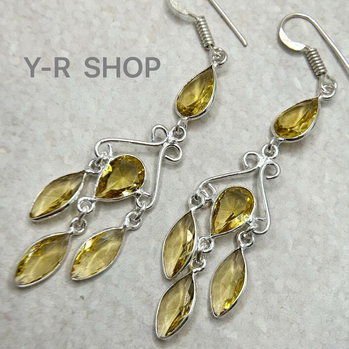 - シトリンのシャラシャラエスニックデザインピアス★レディースシルバー 925刻印カラーストーンアクセサリーアジアン雑貨新品宝石Y-R SHOP