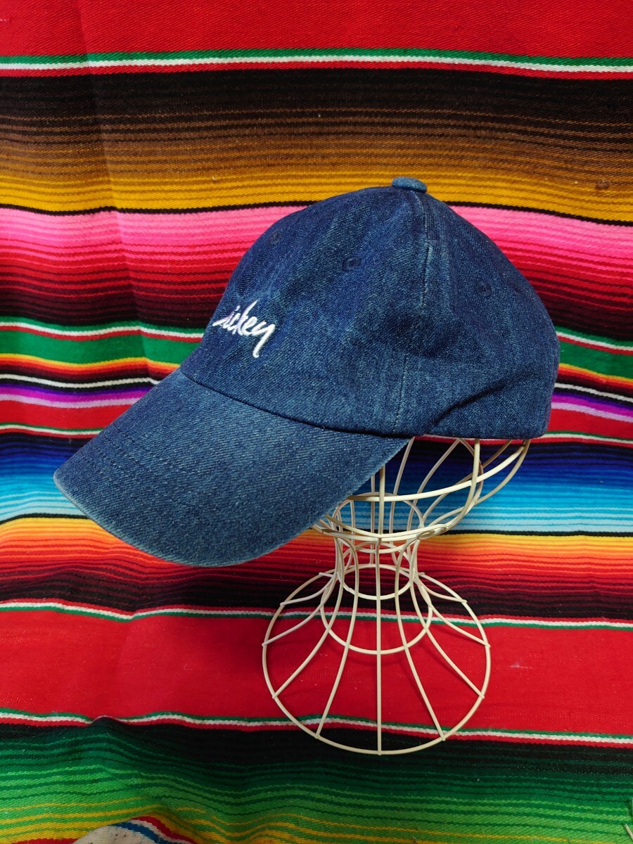 > Walt Disney ウォルトディズニー オフィシャル Mickey ロゴ刺繍 キャップ 美品 フリーサイズ ワンウォッシュ デニム ホワイト