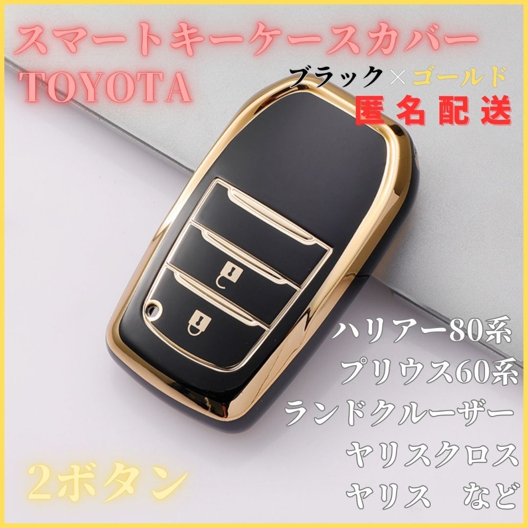 - キーケース キーカバー キーホルダー ハリアー80系 プリウス60系 ランドクルーザー ヤリス マークX トヨタスマートキー 2ボタン 黒金