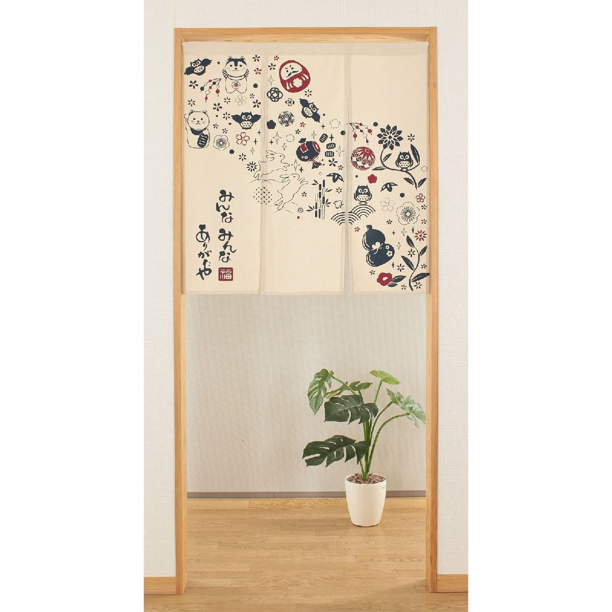 - 和風のれん3連三つ割れ幅85cmx丈90cm ありがたや せせらぎ ナチュラル14602-naru