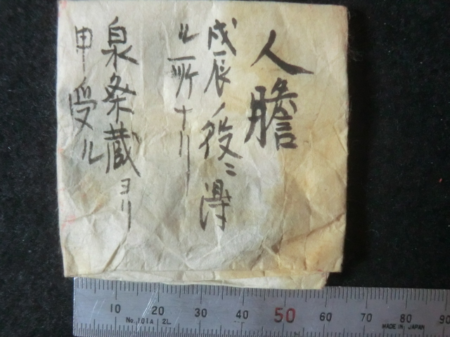 - 出羽久保田藩領湯沢町薬古文書●江戸末期 薬 人膽(罪人の胆嚢) 雄勝郡湯沢町 現在の秋田県湯沢市 250422