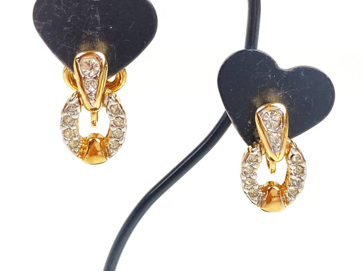 - ニナリッチ NINA RICCI ラインストーン スイング イヤリング 縦:1.7cm ゴールドカラー×シルバーカラー YAS-12252