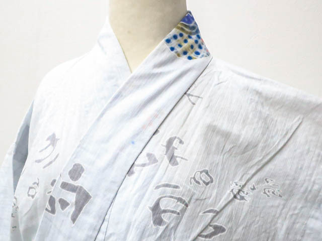 - 《古美術京松》【着物】浴衣 おちょこ文様 落款入り 作家物 身丈約162cm 裄丈約65cm r7z04-330