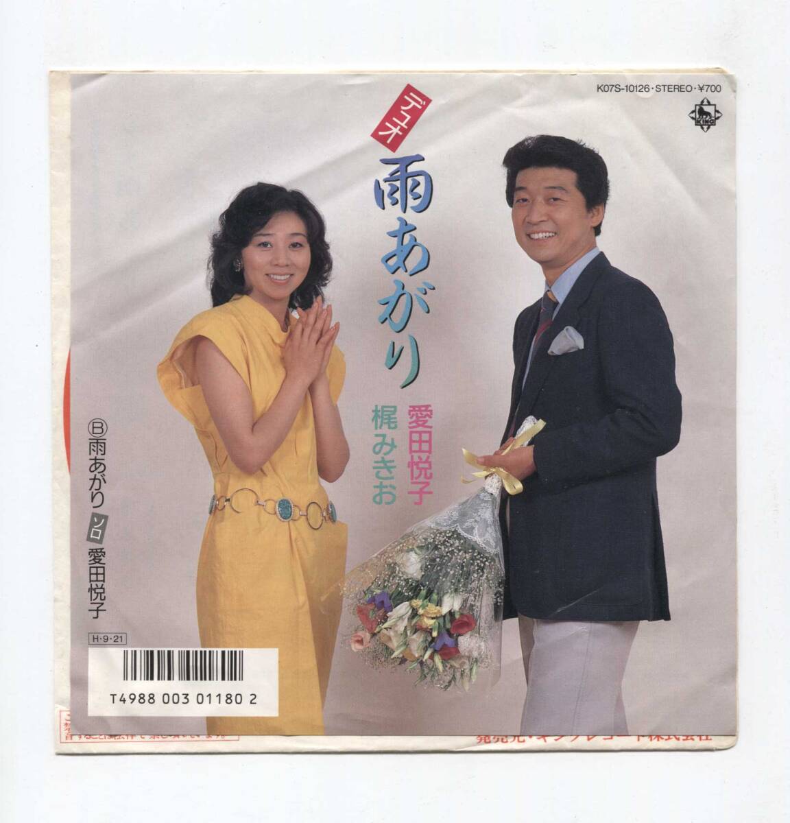 - 【EP レコード シングル 同梱歓迎】 愛田悦子 梶みきお ■ デュオ 雨あがり ソロ 雨あがり ■ 吉岡治 岡千秋 ニッポン放送 昼休み天国