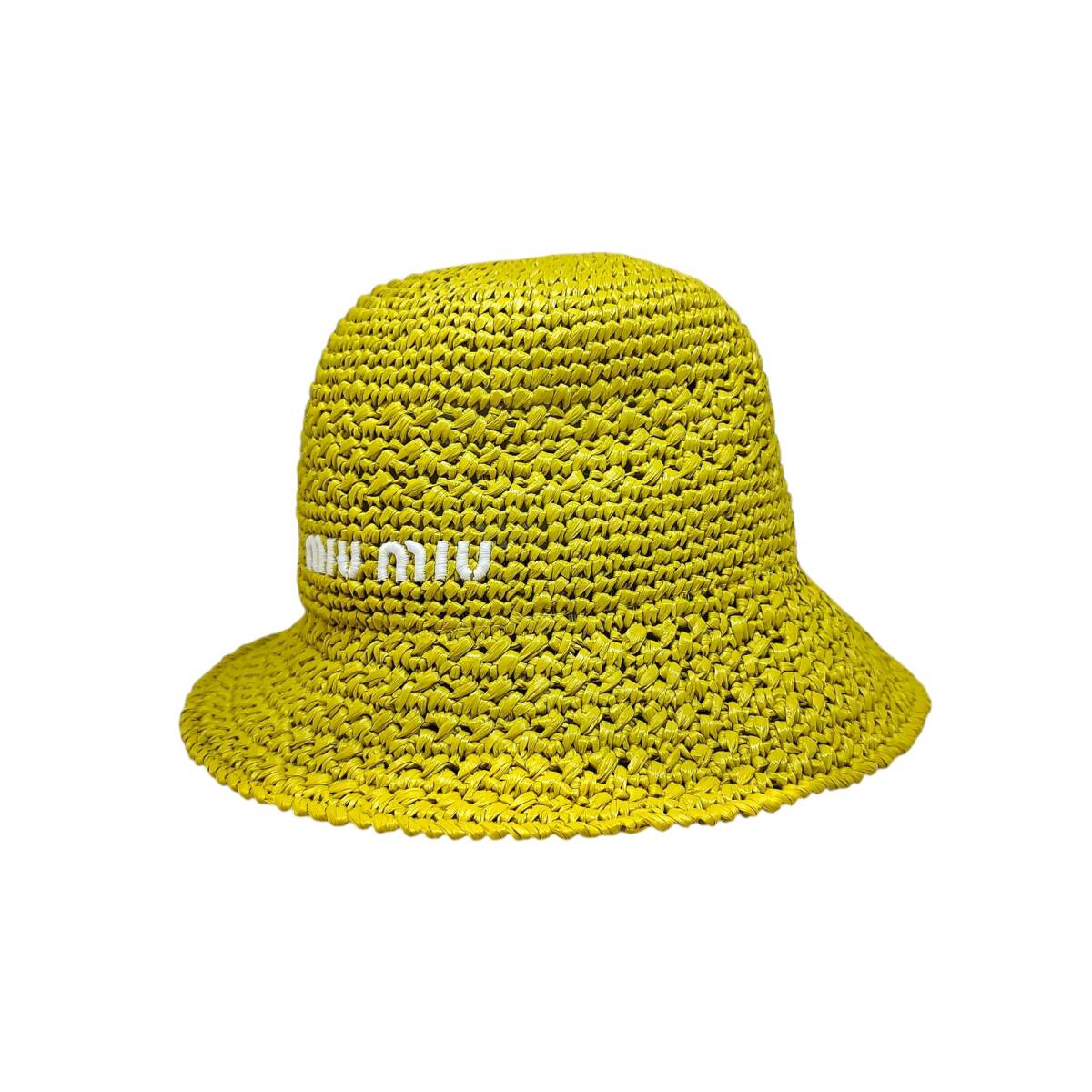 - MIUMIU 2024-2025AW バケットハット 鍵あみ ロゴ ストローハット 5HC287 M イエロー