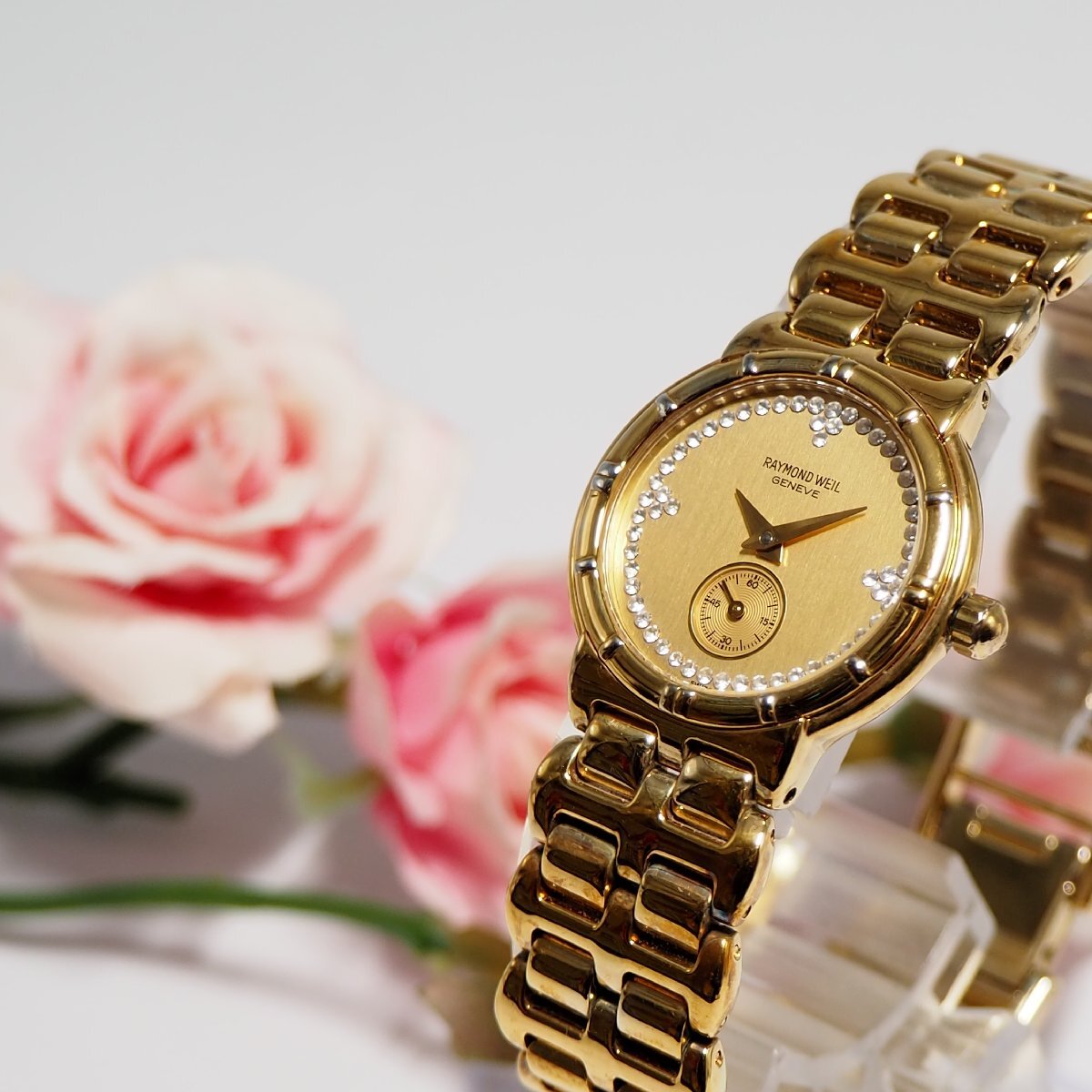 - 美品 レイモンドウィル RAYMOND WEIL ラウンドダイヤ スモールセコンド レディース 腕時計 ゴールド F702 中古