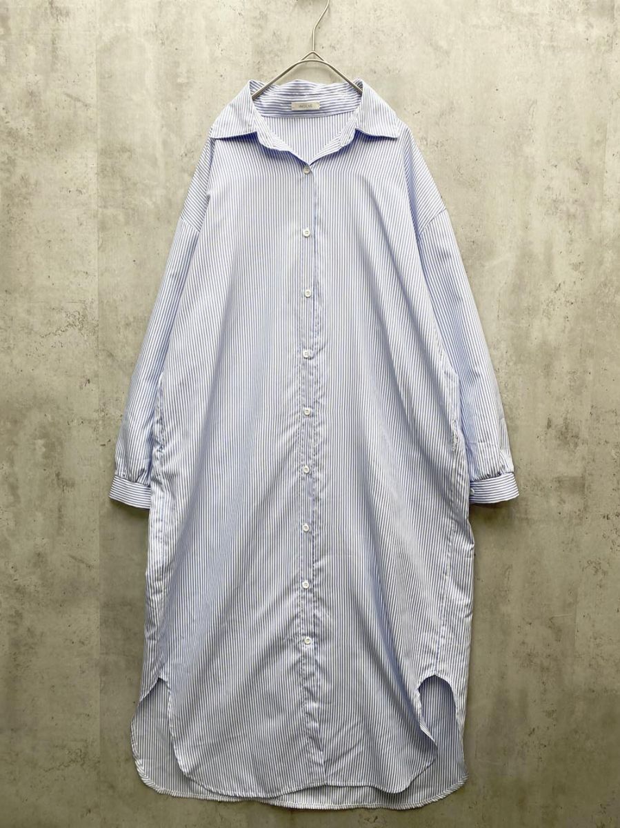 > ゆうパケットOK ■美品 INOLVE イノルブ CHAop205 ストライプ 長袖 シャツ ロング ワンピース sizeF/白x青 ■◇