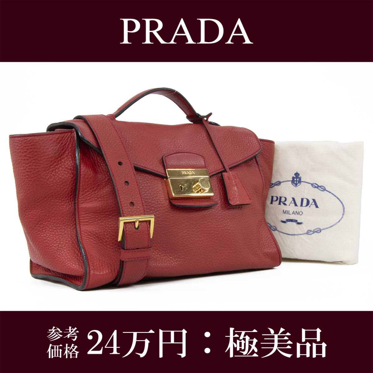 > 本物 送料無料 プラダ 2WAYショルダー ハンドバッグ レディース 赤 レッド 人気 肩掛け 斜め掛け ロゴ 本革 レザー 鞄 バック 綺麗 I231