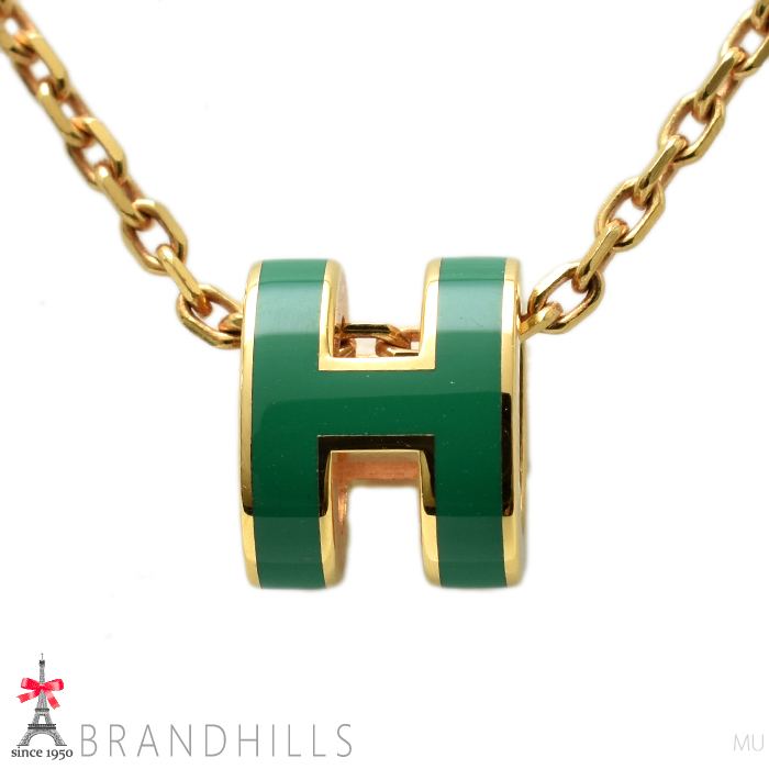 - エルメス ネックレス ミニポップアッシュ H グリーン ペンダント HERMES 美品