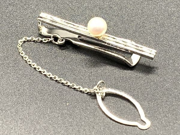 - 【骨董宝飾品】アンティーク シルバー刻印 6㎜玉本真珠『パール ネクタイピン』 オールド メンズアクセサリー L0624C