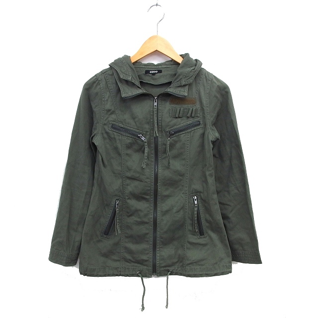 > オゾック OZOC ミリタリージャケット パーカー ドローストリング コットン 綿 ジップアップ 38 カーキ /NT13 レディース