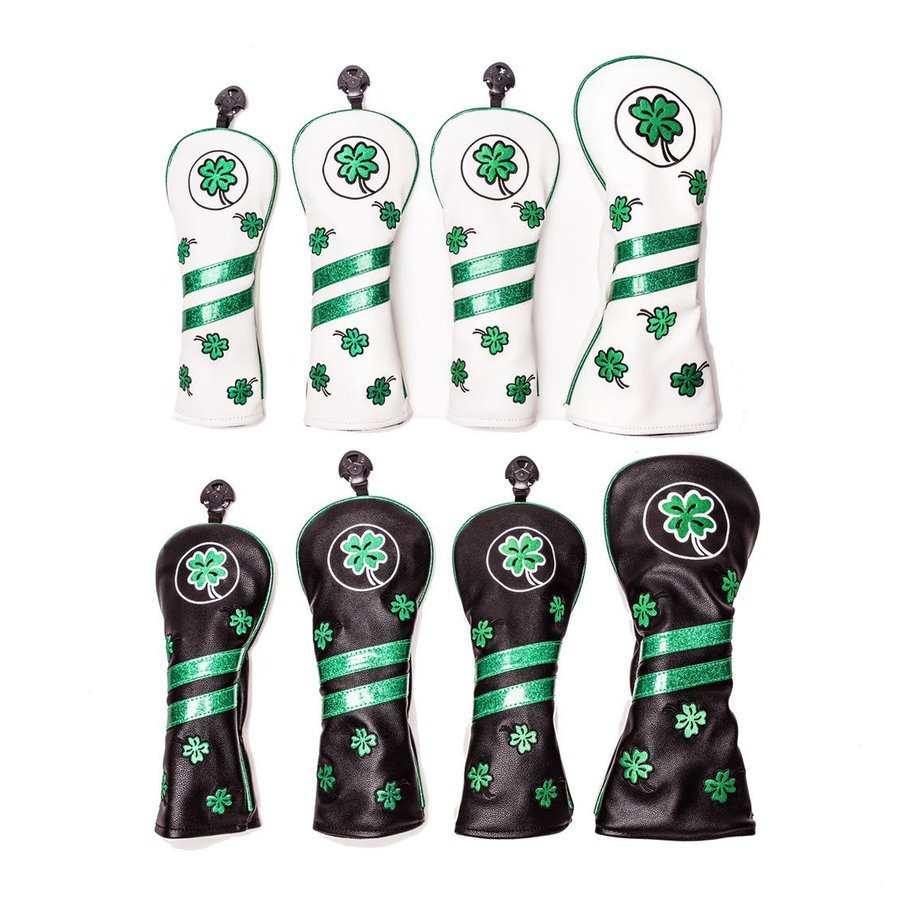 - ヘッドカバー ドライバー用カバー ウッド用カバー ユーティリティ UT用カバー 4点セット クローバー模様 防水仕様 変換ダグ付き