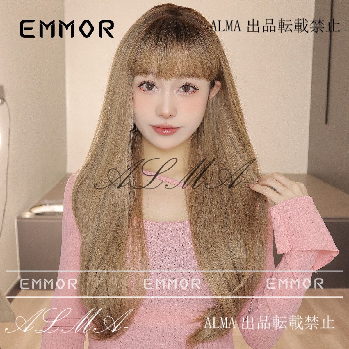 - 新品人毛 ライトブラウン 前髪ストレート ロングストレートヘア 甘くて優しいスタイル つむじ部分手植え 自然に見えますフルウィッグ