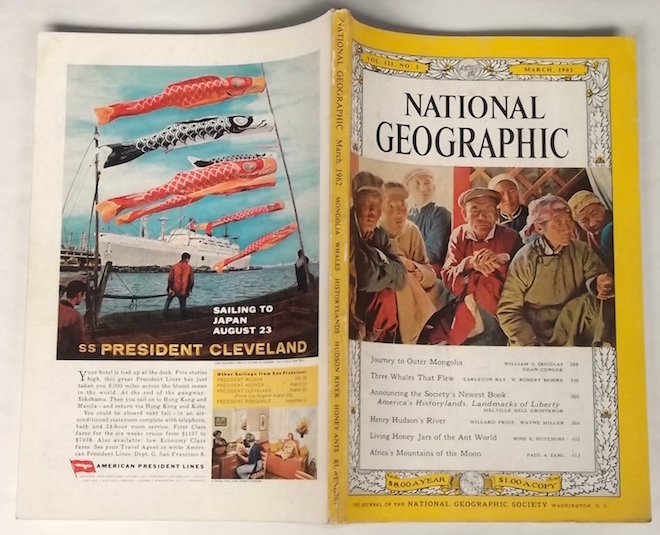 > 1962年 ナショナル・ジオグラフィック 英語 モンゴル シロイルカ ハドソン川 ミツアリ ルウェンゾリ山地 レトロ ビンテージ アメリカ 広告