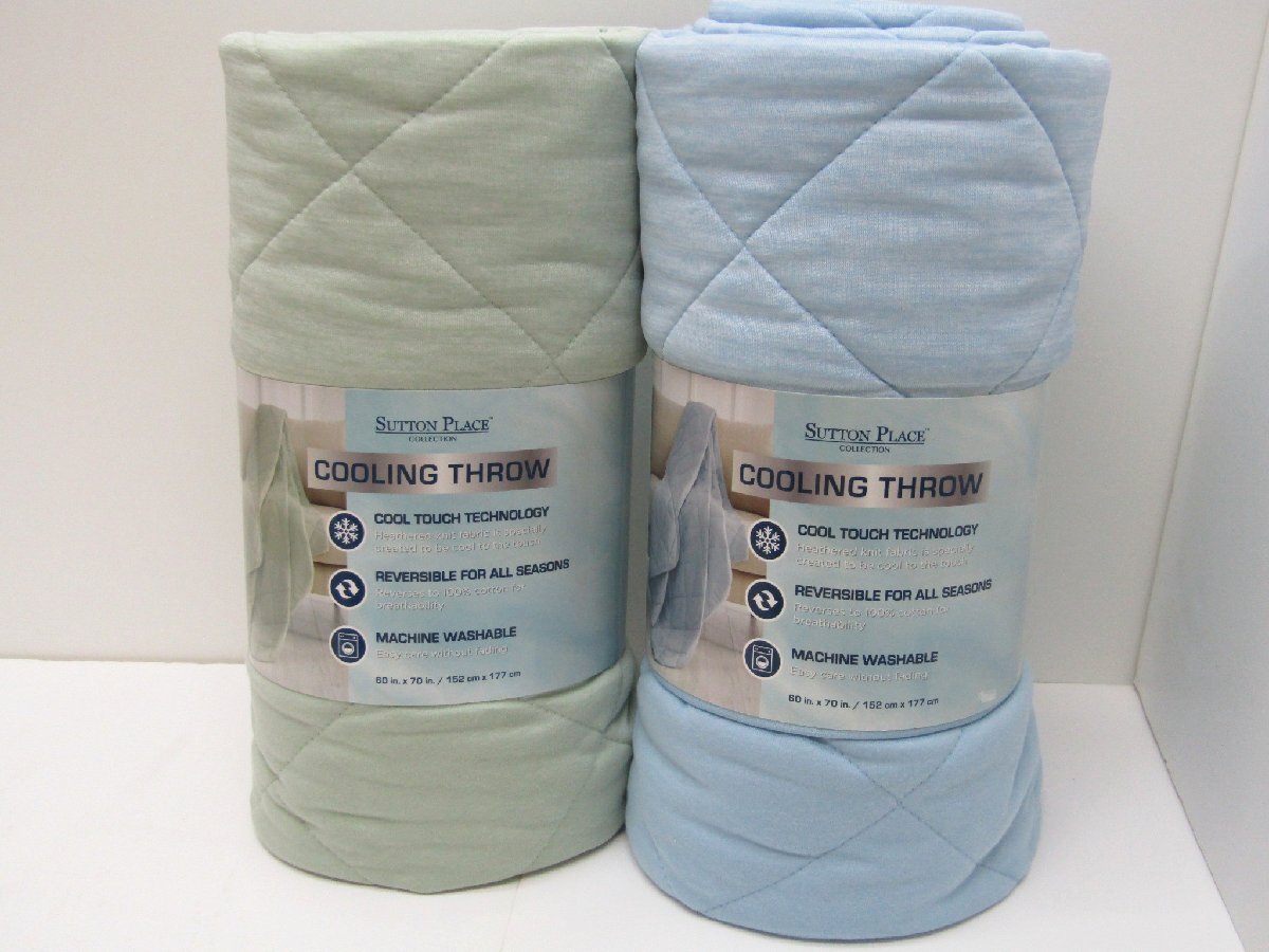 - ★【未使用保管品】コストコ SUTTON PLACE リバーシブル 接触冷感ブランケット 152㎝×177㎝ ブルー・グリーン系 2枚セット