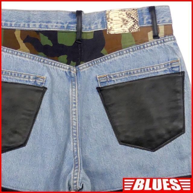 - 即決★メキシコ製 リーバイス 550★W34 ジーンズ ハーフパンツ Levis メンズ レザーコンビ クルミボタン パイソン 迷彩 カモフラ デニム