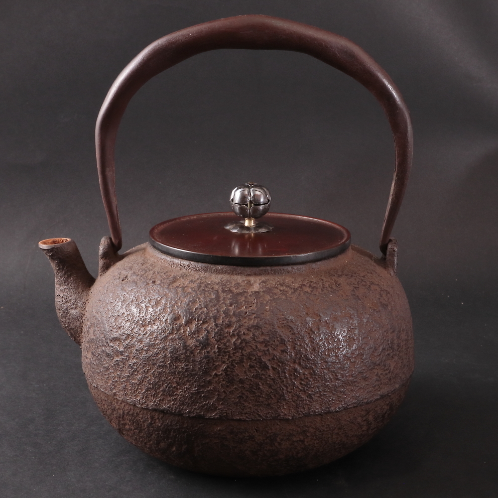 - ◆◇銀摘斑紫銅蓋岩肌鉄瓶 1,476g 茶道具 時代◇◆
