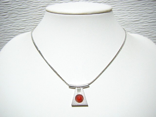 - ★珊瑚? サンゴ? 瑪瑙? メノウ? ペンダント ネックレス レッド 赤 シルバーカラー 【QP27】
