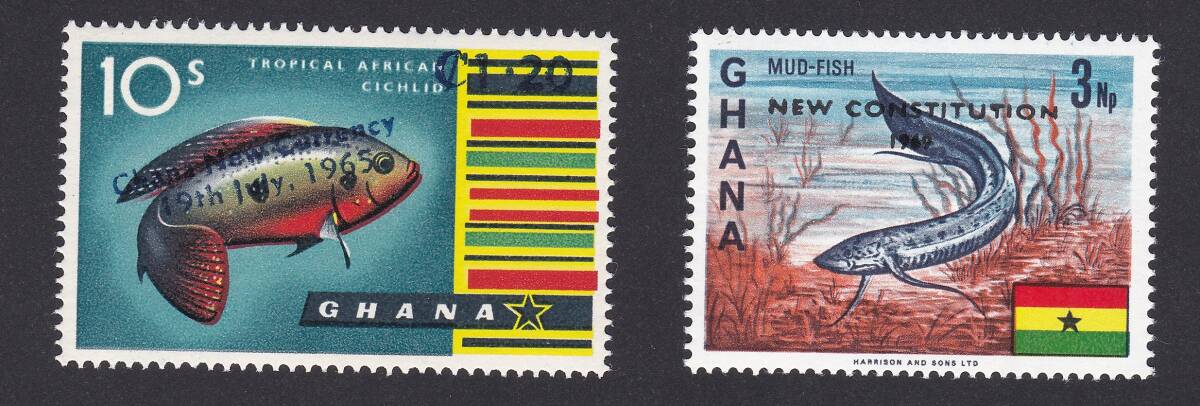 - ガーナ 魚(2種シリーズ抜粋品, 加刷’65,'69) MNH