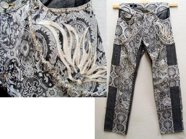 > 即決[M]CABANE de ZUCCA 02AW 2000年代 Y2K アーカイブ ARCHIVE 00s 解体再構築 リメイク 刺繍 総柄 デニム パンツ カバンドズッカ■2300