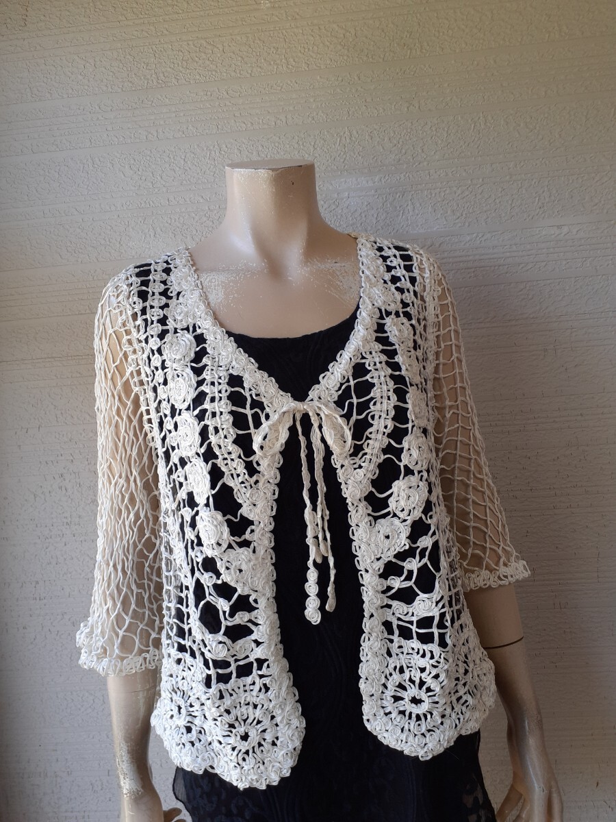 - 関西ファッション連合★美品★はおりもの★レース編み★ホワイト★M号
