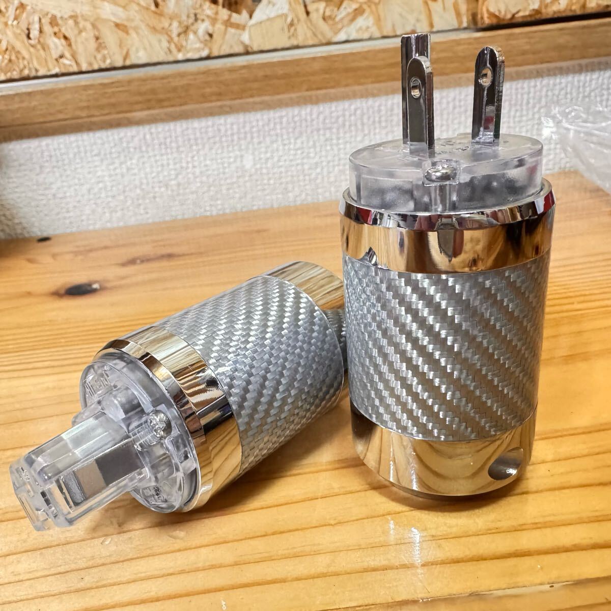 - オーディオ 電源プラグ インレットプラグ セット シルバーカーボン巻 ロジウムメッキ フルメタルシェル 【FI-50】
