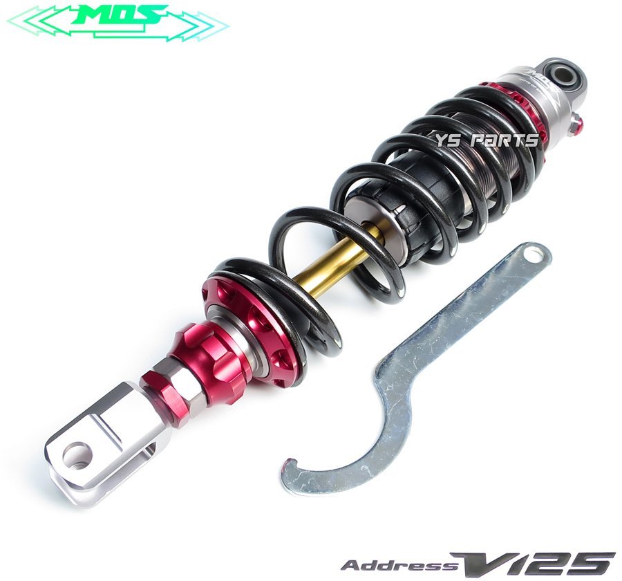 - [NEWモデル]アドレスV125G[CF46A/CF4EA]アドレスV125S[CF4MA]リヤサス赤[チタンコートロッド/無段階プリロード調整/30段階減衰圧調整]