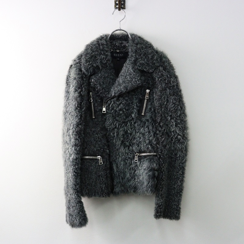 - 極美品 Archive JPタグ 2014 GUCCI 355972 グッチ ラムファー ライダースジャケット 40 グレー系/ブルゾン 毛皮【2400014387728】