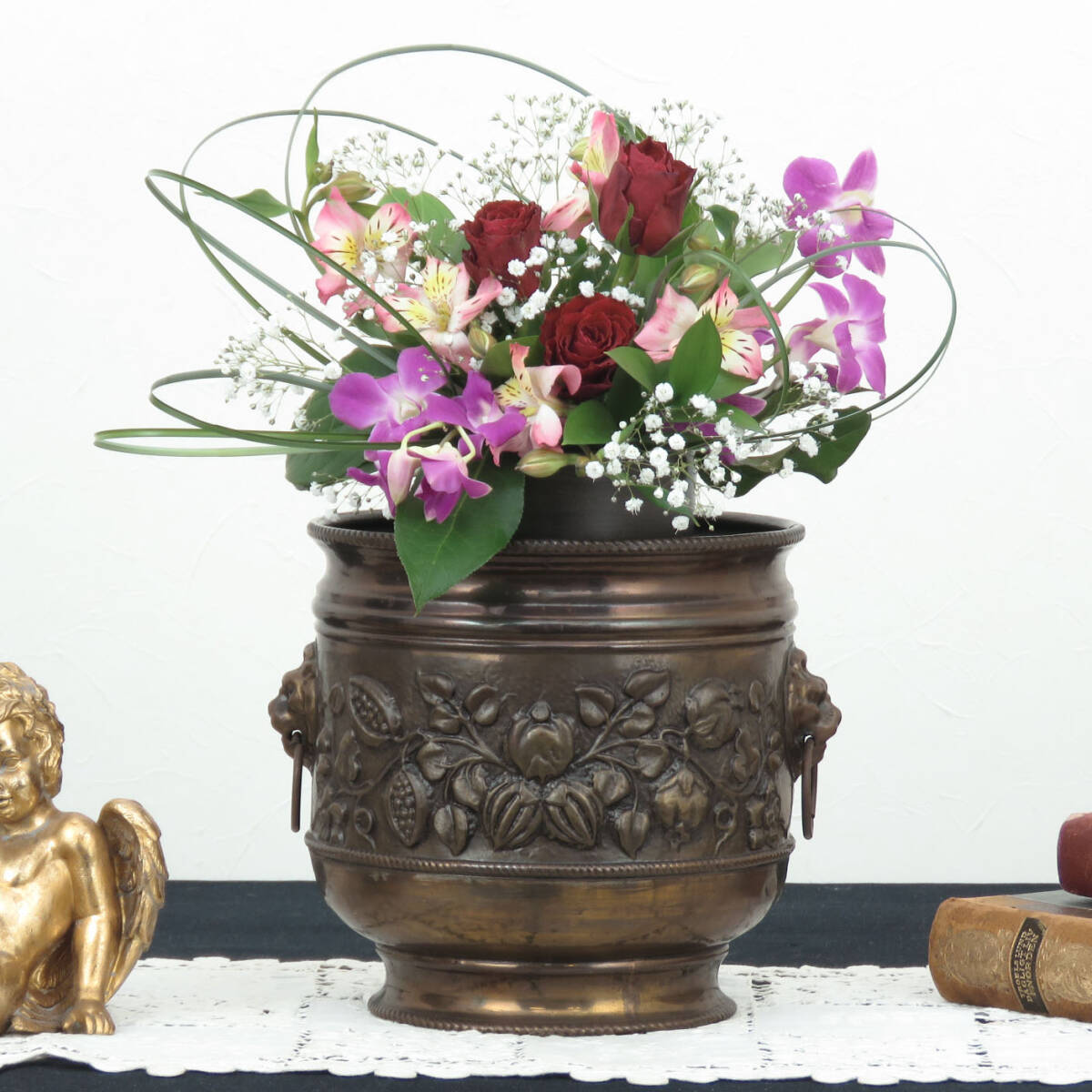 - ザクロの植物が打ち出された古いコールボックス/石炭入れ/鉢カバー/ブラス/店舗什器/ディスプレイ雑貨/インテリア小物/室内装飾/AL-2014