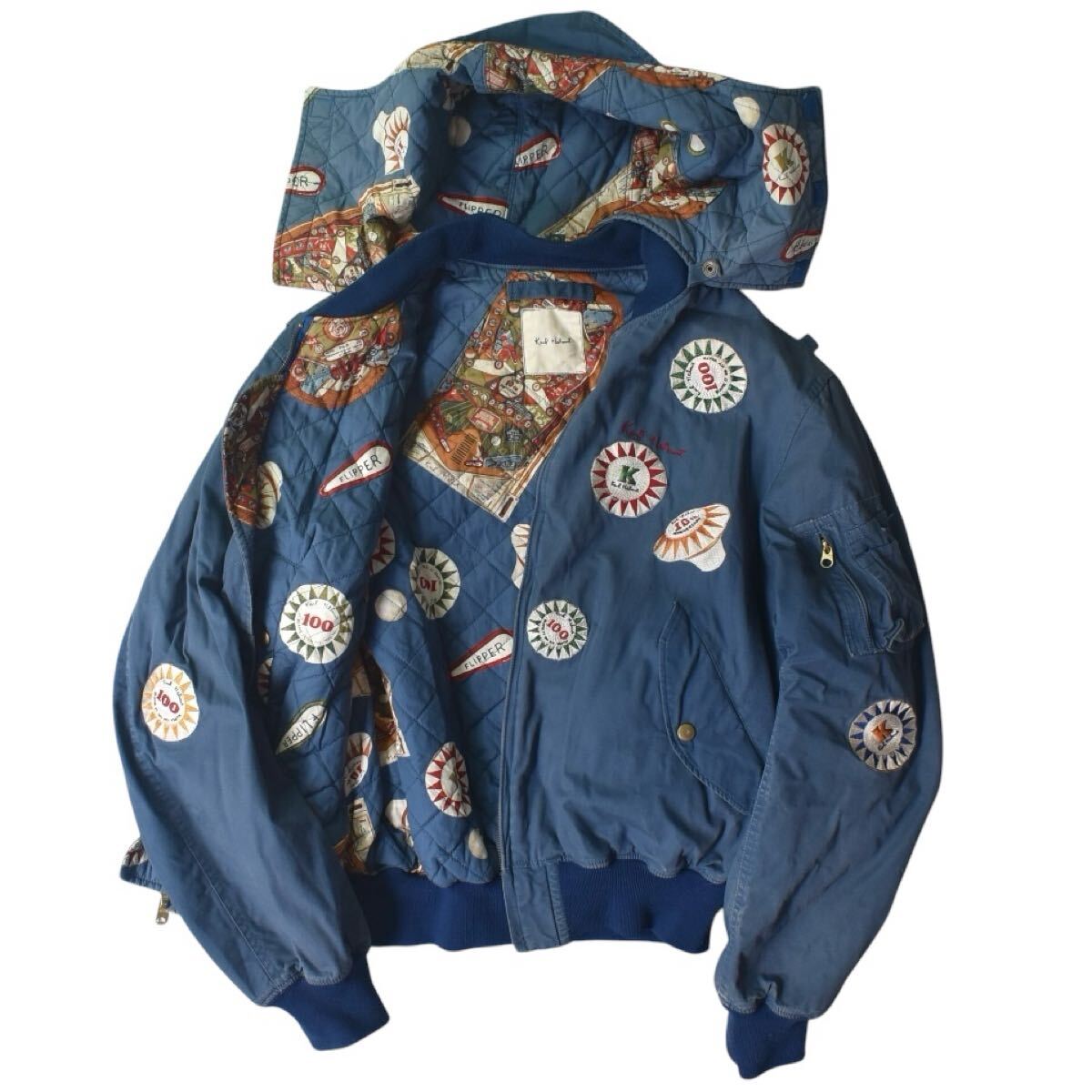 - 【激レア】90s Karl Helmut MA-1 裏地総柄 刺繍 青Pink House フード取り外し可能 裏地キルティング 中綿ジャケット 刺繍 ピン 青