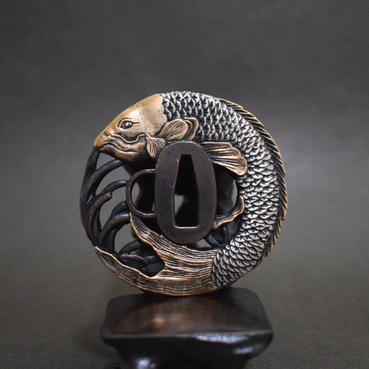 - 刀鍔 鯉 刀装具 日本刀 小太刀 小道具 鍔 【h-235】