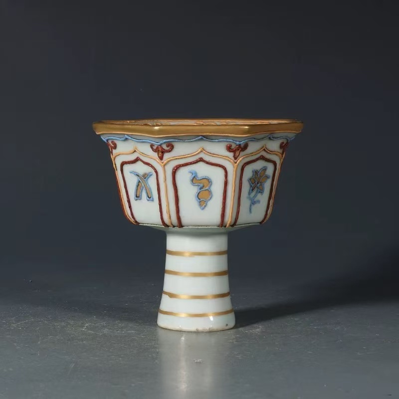 > 元時期 古陶磁器 瀝粉嵌金高足杯 品茗杯 茶杯 茶器 極細工 急須 古賞物 古美味 中国唐物 時代物 骨董 中国古美術