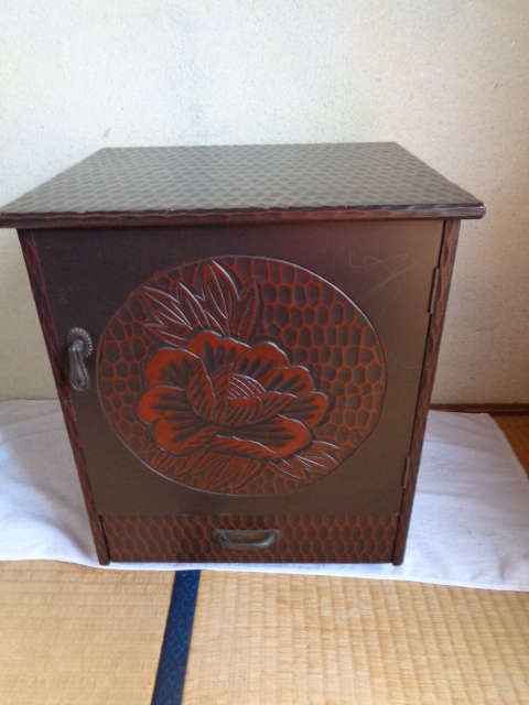 - 木工芸 鎌倉彫-片開き戸&下段抽斗②/サイドケース・サイドボード・書棚と抽斗・木製小物入れ・デスク脇付け・棚・チェスト・他/